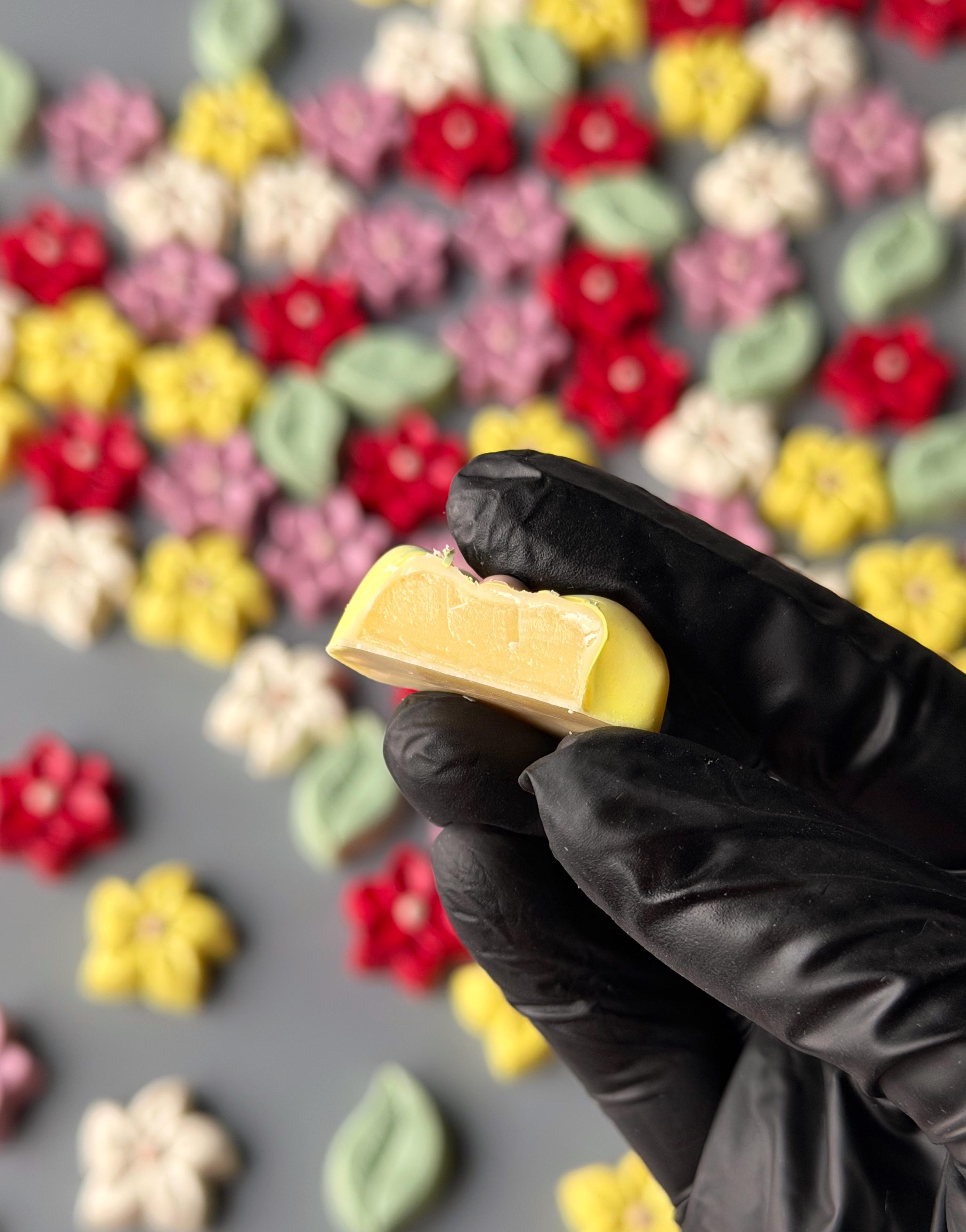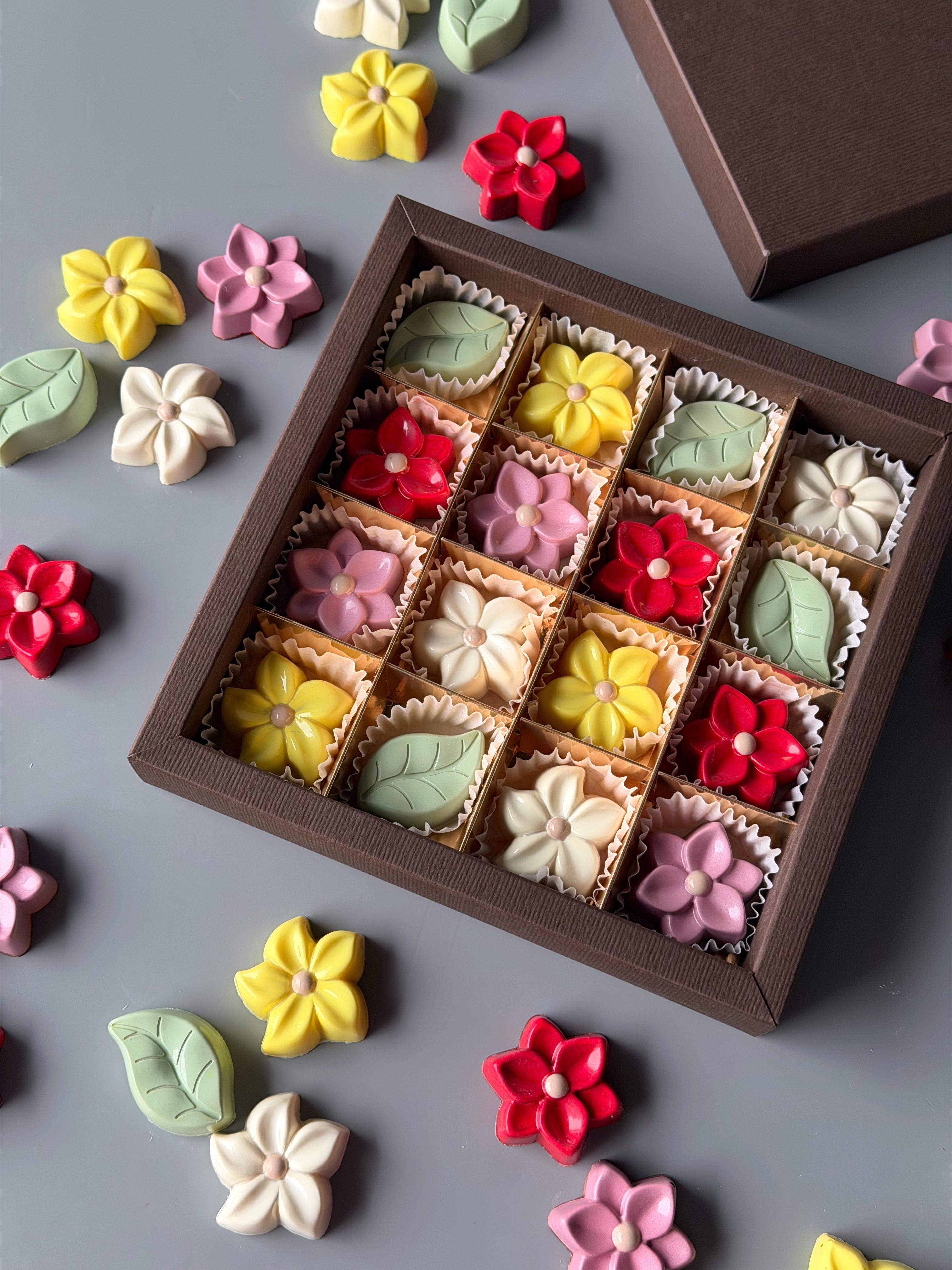 Набор шоколадных конфет по мотивам популярных и освежающих летних лимонадов. - цитрусовый (лимон-апельсин-бергамот), - мохито (мята-лайм), - грушевый (груша-юдзу), - смородиновый (смородина-лаванда), - клубничный (клубника - можжевеловые ягоды). Для изготовления конфет использован белый, молочный и тёмный французский шоколад.